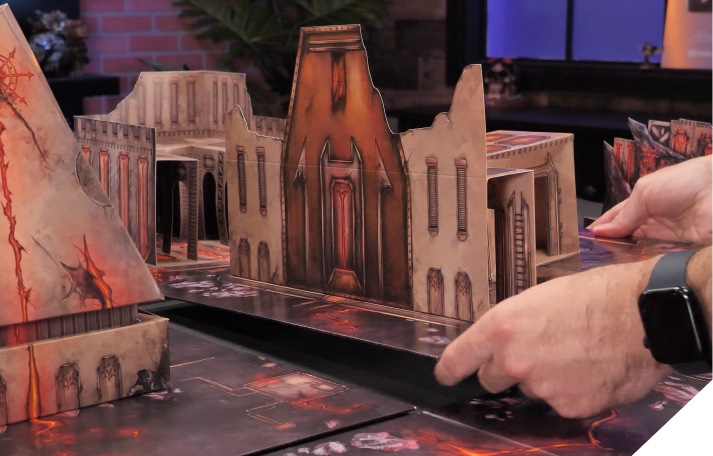 Explore the dark and dangerous atmosphere of this infernal landscape with this core box that contains a full 45"x60" tabletop in a box!